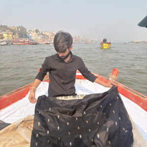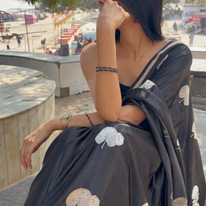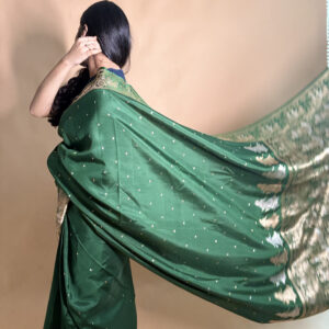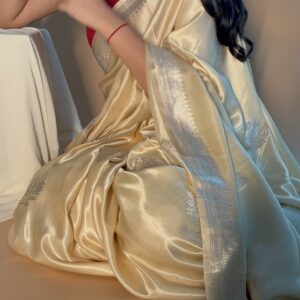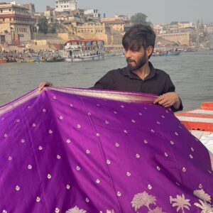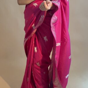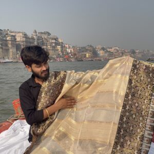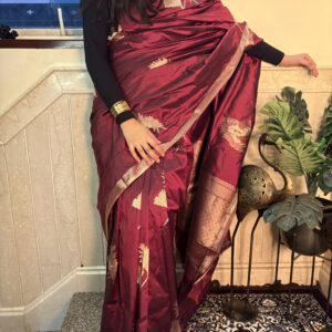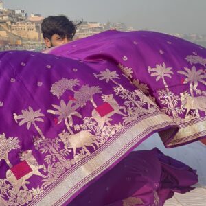 Our sarees are thoughtfully crafted using traditional weaving techniques inspired by authentic Banarasi handloom artistry. Skilled artisans focus on intricate designs, fine textures, and careful detailing to ensure every piece reflects quality, heritage, and elegance.