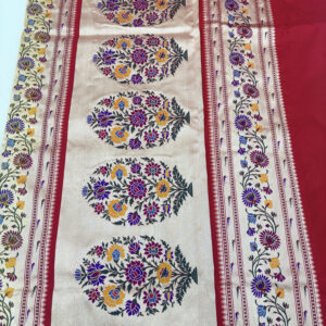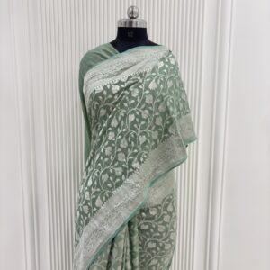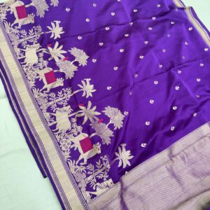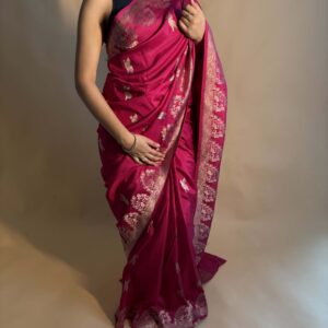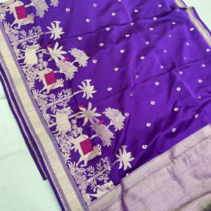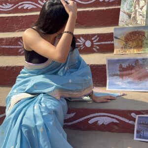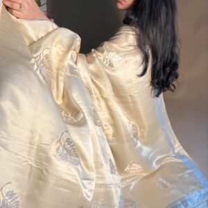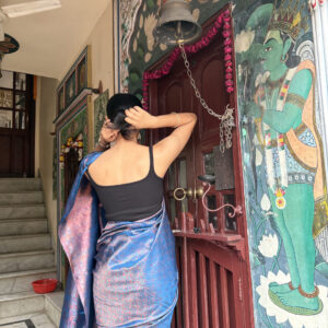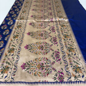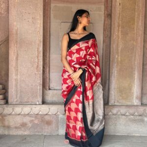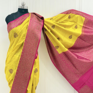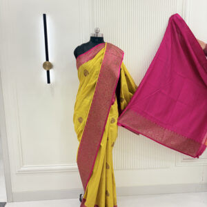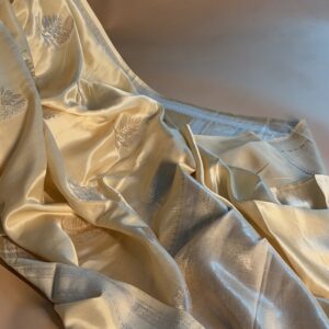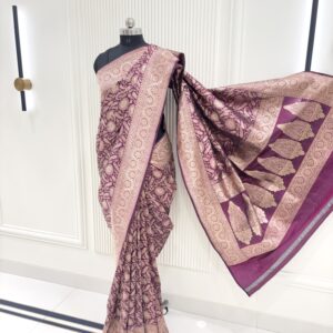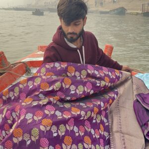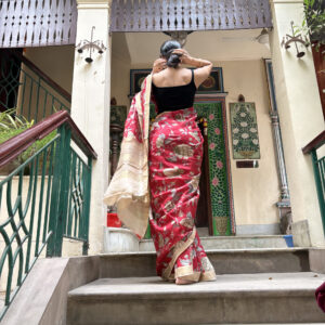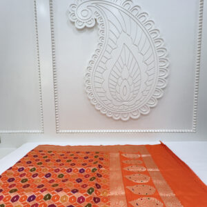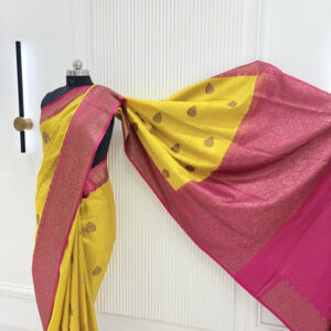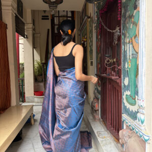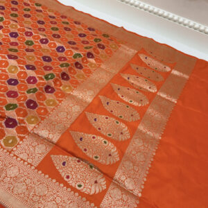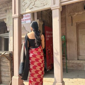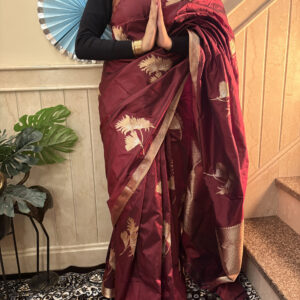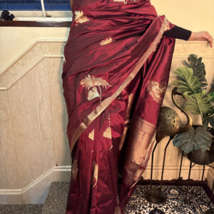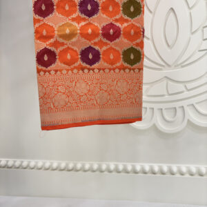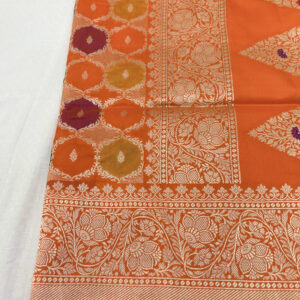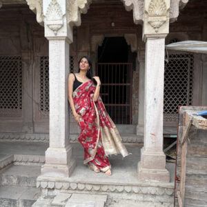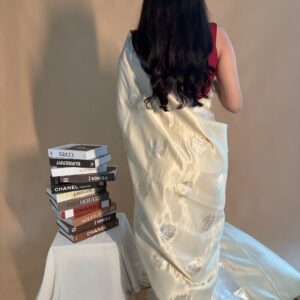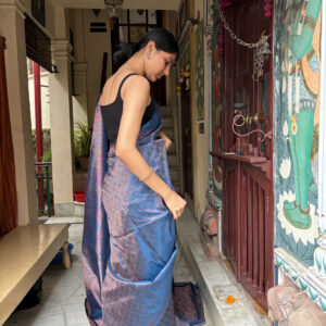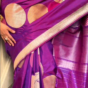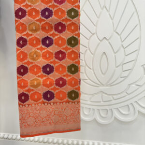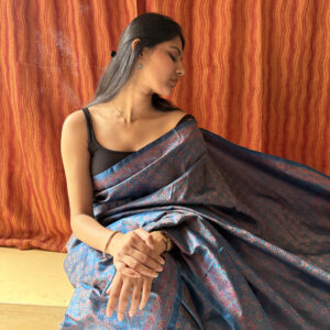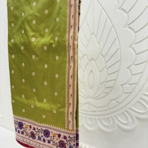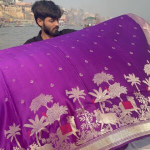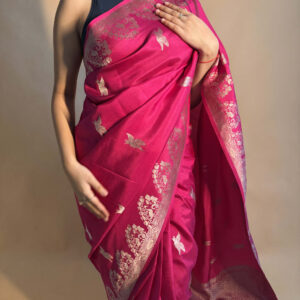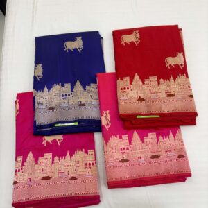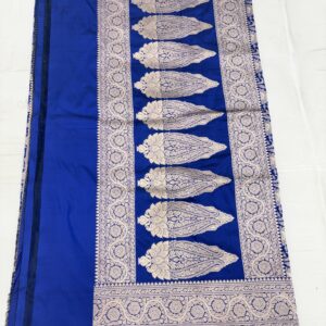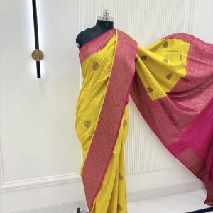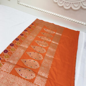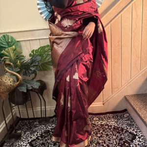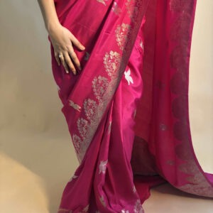 We curate sarees made from premium silk varieties commonly associated with Banarasi weaving, including Katan silk, brocade silk, and other refined silk blends that enhance durability, richness, and graceful drape.