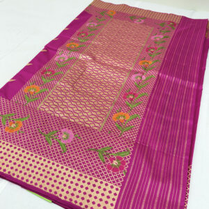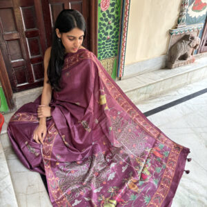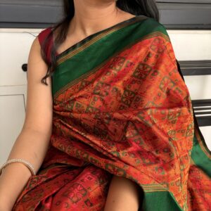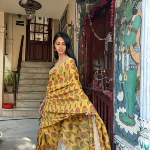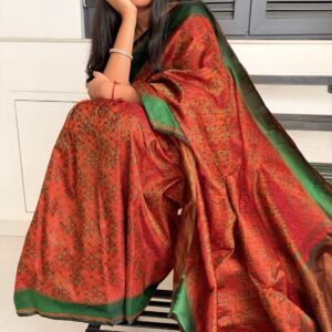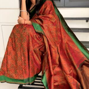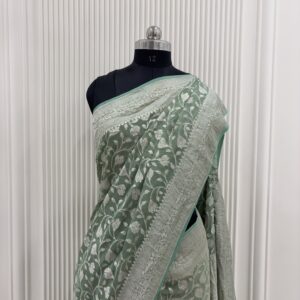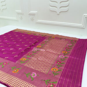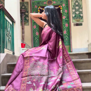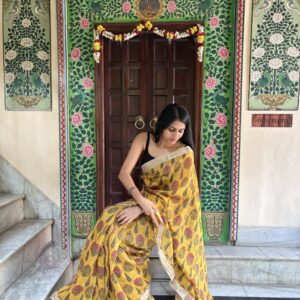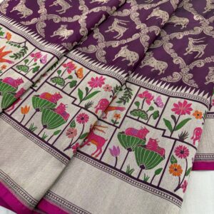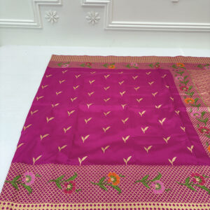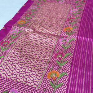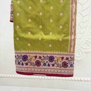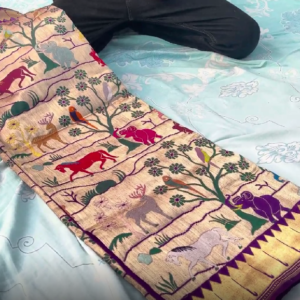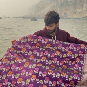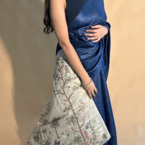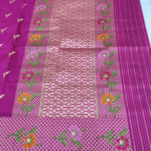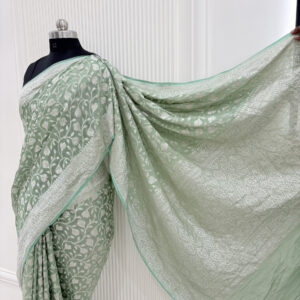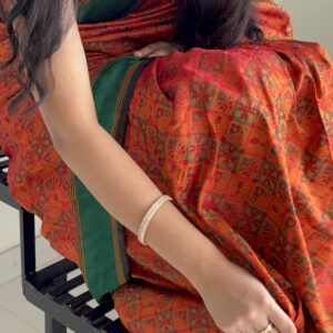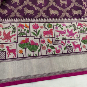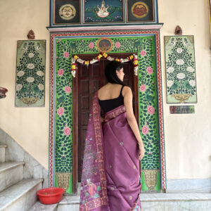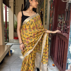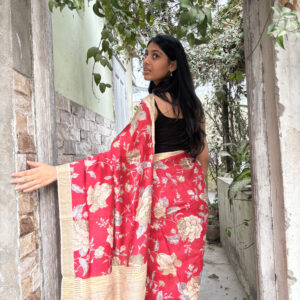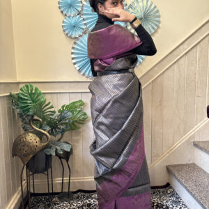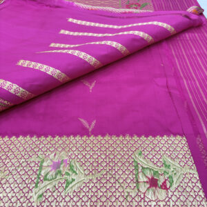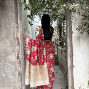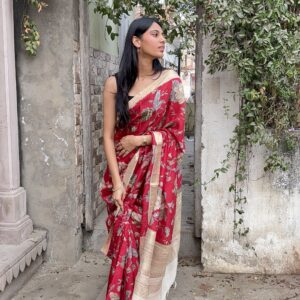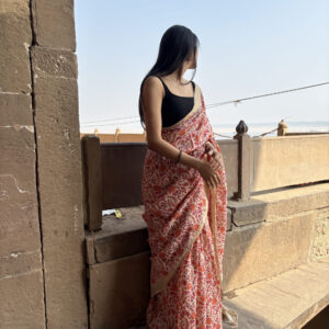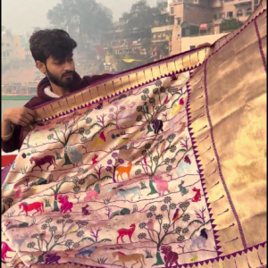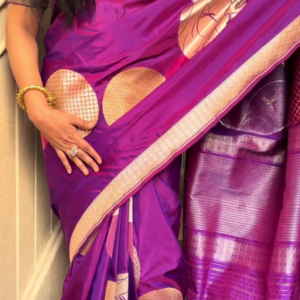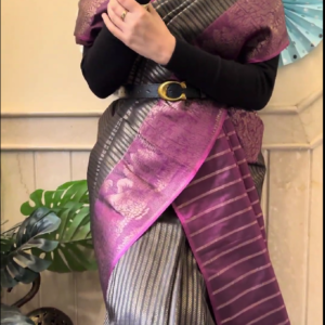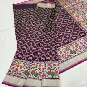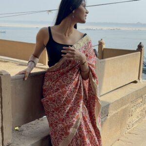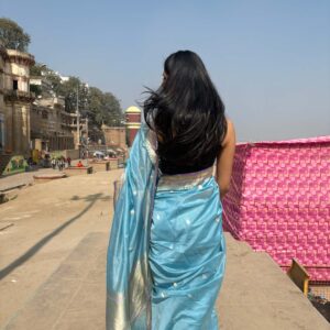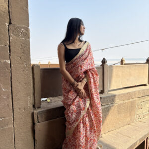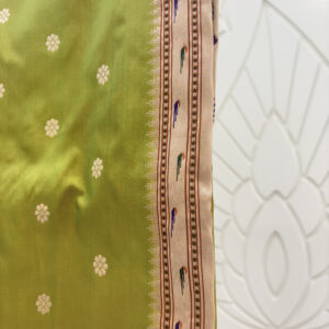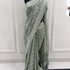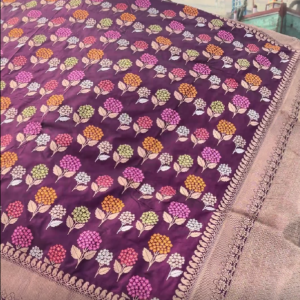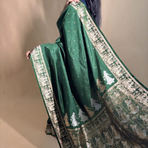 We curate sarees made from premium silk varieties commonly associated with Banarasi weaving, including Katan silk, brocade silk, and other refined silk blends that enhance durability, richness, and graceful drape.