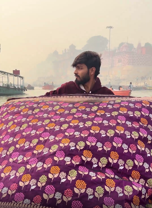 Embrace elegance with the BOUQUET OF FLOWERS pure Katan silk saree in a stunning purple hue. Featuring delicate garden bloom motifs, it reflects refined craftsmanship and luxurious texture. Its graceful drape and vibrant appeal make it perfect for weddings, festive celebrations, and special occasions, adding a touch of timeless sophistication.